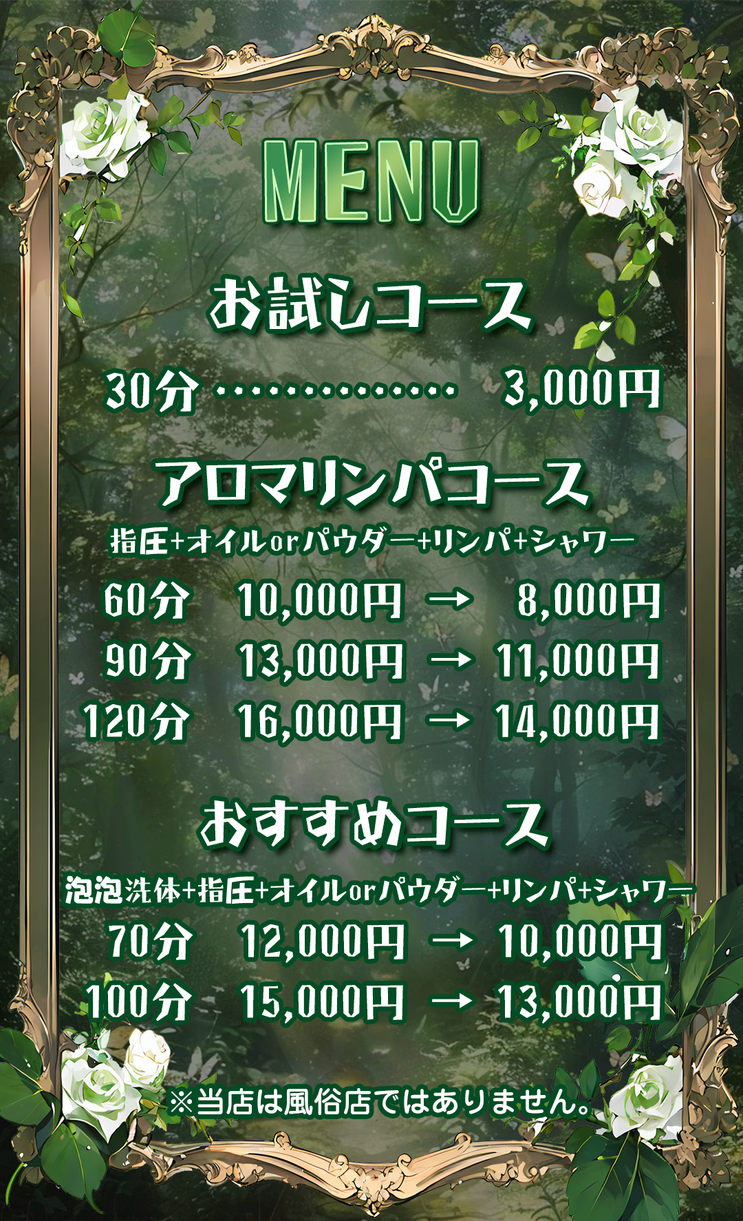 他店とは一味違うサービスできっと満足いただけるお店を目指します。日々お仕事にお疲れのみなさま。無理をなさらず、疲れをためこまず、ぜひ当店へお越し下さい。